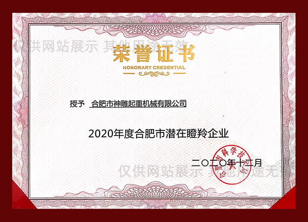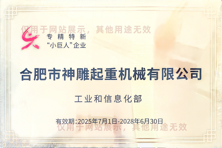 合肥神雕起重是高新技術企業(yè),是安徽省科創(chuàng)板掛牌企業(yè)(證券代碼:630331),同時榮獲安徽市場質量、誠信五星級企業(yè)、合肥經濟圈示范企業(yè)、合肥市創(chuàng)新型企業(yè)、安徽省市場質量放心產品等榮譽稱號